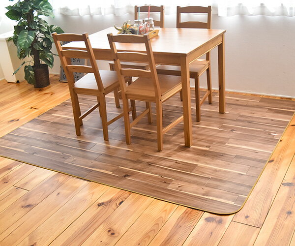 ダイニングラグ 撥水 木目 182cm×260cm ブラック(E2199) ホワイト(E2197) 日本製 クッションフロア はっ水 デスクマット ラグ ダイニングマット キッチン 北欧 おしゃれ 拭ける おしゃれ 抗菌 防カビ カーペット